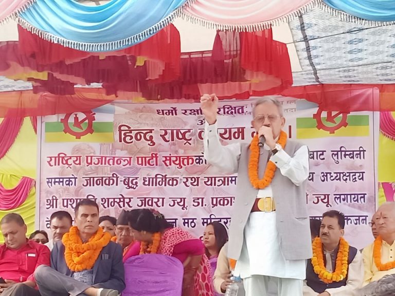 राप्रपा संयुक्तको रथ यात्रा नवलपुरमाः नेकपा र काँग्रेसले धर्मनिरपेक्षता लादेर नेपाल र नेपालीलाई धोका दियो