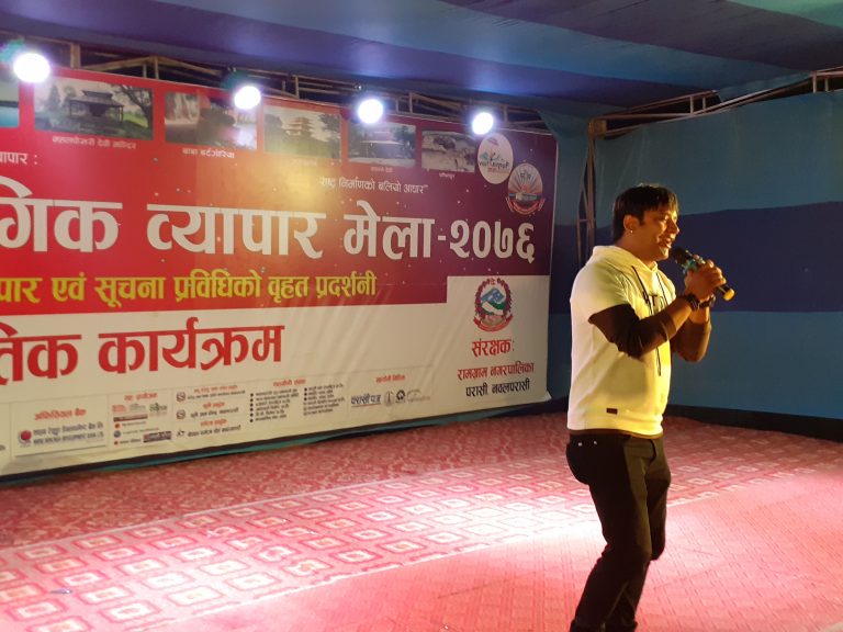 परासी । पश्चिम नवलपरासीको सदरमुकाम परासीमा मंसिर ३ गतेदेखि जारी नवलपरासी औद्योगिक व्यापार मेला २०७६ मा सोमबार राष्ट्रिय ख्याति प्राप्त कलाकार रमेशराज भट्टराईका सांगीतिक प्रस्तुतीसँग दर्शकहरु झुमिझुमी रमाएका छन् ।