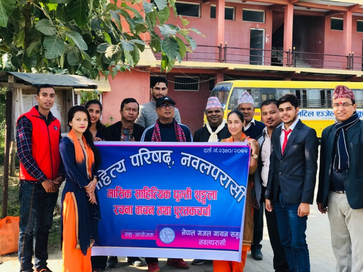 कार्तिक १४ नवलपरासि साहित्य परिसद नवलपरासिले आफ्नो ३७ औ मासिक साहित्यिक घुम्ति शृङ्खला साथै पुस्तक चर्चा रचना वाचन कार्यक्रम यसै परिसदका अध्यक्ष डा श्याम प्रसाद न्यौपाने को अध्यक्षता साथै सुमन गोपाल आचार्यको बिशेश आतिथ्य मा रामग्राम ३ परासि स्थित परासि क्याम्पस मा सम्पन्न गरेको छ्।