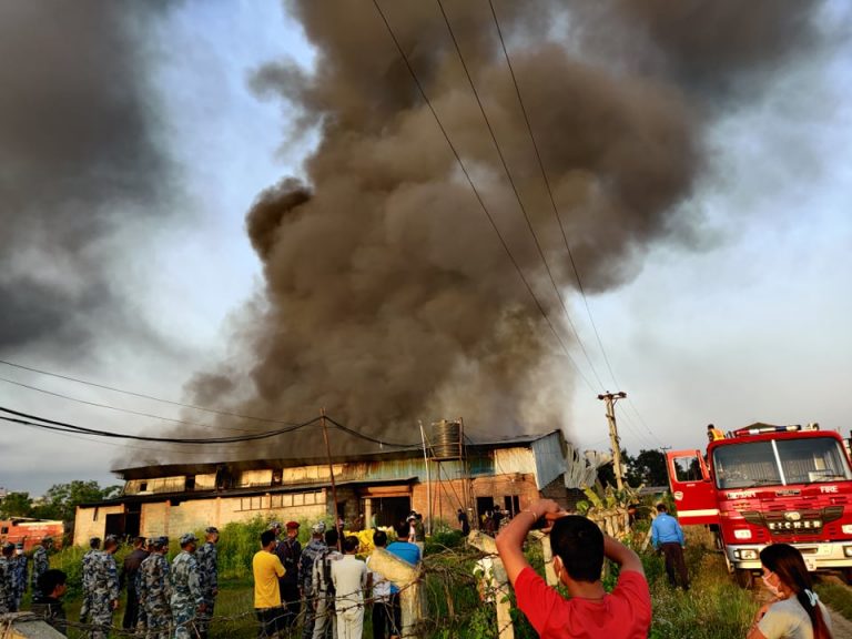 चितवनको सरस फुड इन्डस्ट्रीजमा भिषण आगलागी, आगो नियन्त्रण बाहिर