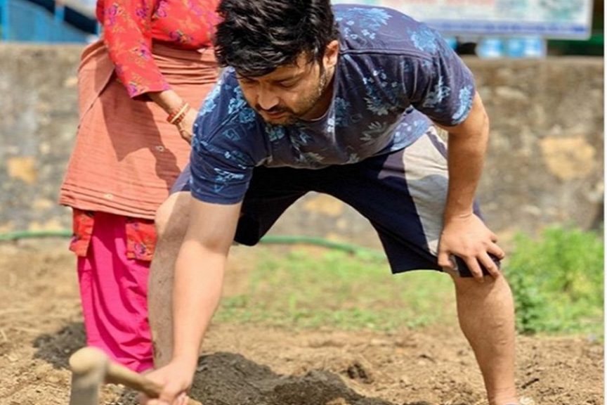लकडाउनमा बारी खन्दै नायक आर्यन