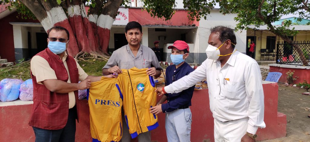 उद्योग वाणिज्य महासंघका प्रदेश अध्यक्ष तिवारीद्वारा पत्रकारलाई प्रेस ज्याकेट र स्वास्थ्य सामाग्री प्रदान