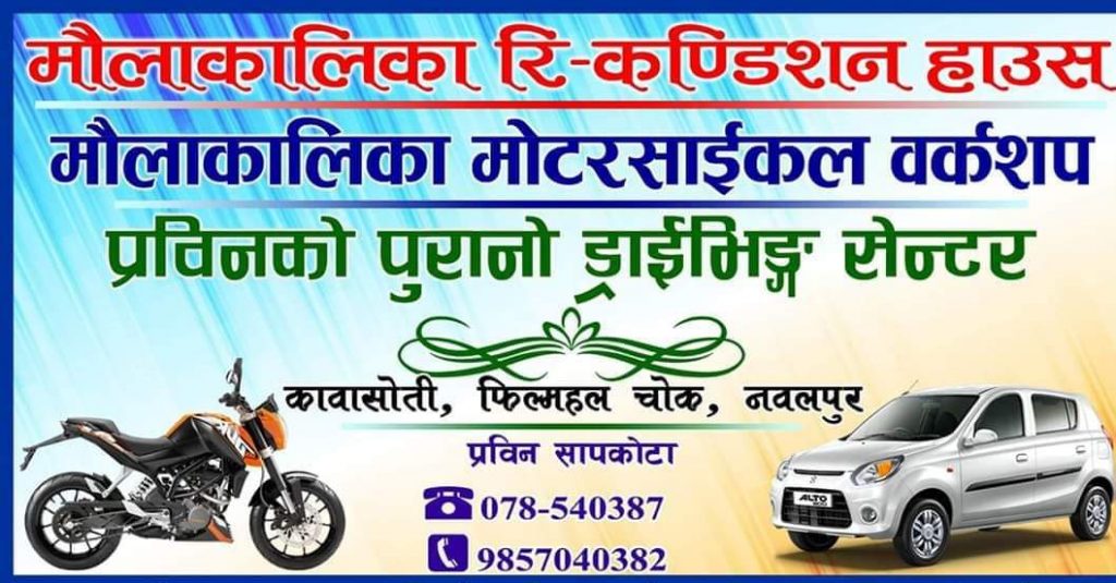 नवलपुरको कावासोतीमा रहेको मौलाकाली मोटरसाईकल वर्कशपले आफ्ना ग्राहकहरुको वक्यौता रकम मिनाहा गर्ने भएको छ । कावासोतीको फिल्महल चोकमा रहेको सो वर्कशपले कोभीड १९ को कारा जारी बन्दाबन्दीले गर्दा आम सर्वसाधारणलाई समेत मर्का परेको भन्दै केही भएपनि राहत प्रदान गर्नकालागि वक्यौता मिनाहा गर्न लागिएको मौलाकालिका मोटरसाईकल वर्कशपका सञ्चालक प्रविन सापकोटाले बताए ।