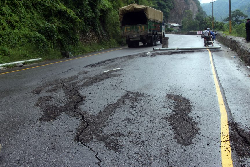 नारायणगढ–मुग्लिन सडक थप धसियो, यातायात सञ्चालनमा समस्या