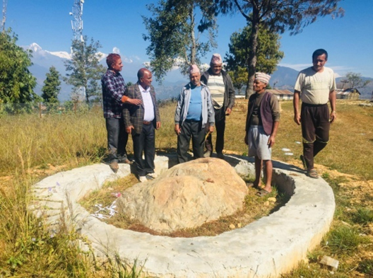 पूजा समितिका अध्यक्ष यज्ञबहादुर खत्रीसँग भेट भयो । उहाँले केही थप यहाँ घटेका घटना र किवदन्ती थप्नु भयो । सर्बप्रथम एउटा ढुङ्गाको छानो भएको पूजास्थलमा पाँचओटा साना साना मौला रहेको थिए । आँधी आएर भत्केपछि । पुननिर्माण गर्दा एउटै ठूलो मौलो बनाइयो । छानो राखिएन र यसमा रहेका घन्टीहरू पनि भित्रबाट बाहिर निकालेर झुण्ड्याउने बनाउने भइएको छ । यस मुन्ना मन्दिरमा घटस्थापना बाट ९ दिन पूजा गरिन्छ । पूmलपातीका दिन कोरीपूजा( बली दिइदैन), कालारात्रीमा फुर्से काट्ने र नवमीका दिन बाहिर मौलामा राँगो कटिन्छ र मन्दिरमा पाठा, कुखुरा, परेवाको बलीदिने चलन भएको कुरा बताउनु हुन्छ । यस कोटमा फलेबासका १६ कुरिया, कुर्घा र शंकरपोखरी जनताहरू पूजामा सहभागी हुने गर्दछन् । यस पछि हामी त्यहाँ रहेका तीनवटा ओखल हेर्न थाल्छौं । दुई ओटा ओखल राम्रै अवस्थामा रहेका र एउटा ओखल पर्खाल बनाउँदा फुटालेको अवस्थामा देखियो । यी ओखलको बारेमा पनि खढ्कबहादुर थापा लगायत सबैले एउटा रमाइलो कथा सुनाए । राजाको पालामा यी ओखलमा बेलुका धान राखेर छाडेपछि बिहान चामल तयारी अवस्थामा रहने गरेको हुन्थ्यो । यो चमत्कारी ओखललाई लिमीठानाका काजी(नाम थाहा नभएको)ले लगेको र काजीले लगे पछि त्यहाँ धान कुट्ने काम बन्त्द भएकोले पुन फर्काइएको । त्यसपछि धानकुट्ने काम बन्द भएको कुरा पनि सुन्नमा आयो । ओखलको अवलोकनपछि हामीहरू नयाँ निर्माण गर्न लागेको पोखरीको अवलोकन गरियो । वडा अध्यक्ष अर्जुनबहादुर कार्कीले ‘यो पोखरीको माझमा फोहोर जडान गरे आकर्षक बनाइन्छ भन्नुभयो’। हामी सबै इनारतिर लाग्छौं । इनारको माथी दुईओटा काठ राखिएको छ । यसलाई संरक्षित रूपमा राख्न पर्ने देखियो । इनारमा बालबालिका, पशु जो पनि खस्न सक्ने अवस्थामा छ ।पानी पनि छ । यस इनार समबन्धित एउटा कथा यज्ञबहादुर खत्रीजीले सुनाउनु भयो । भोटमा युद्ध हुँदा एउटा लामाको काटिएको टाउको यस इनारमा उत्रेको र त्यस टाउको व्यवस्थापन गएिको र भोटे झाँक्री भनेर त्यसको पूजा हालसम्म गरिने गरिएको भनी भोटे झाँक्रीको थानलाई पनि अवलोकन गरियो । भोटे झाँक्रीको आडैमा पानीको धारा थियो तर हाल त्यो धारा दब्बिएर गएको कुरा पनि जानकारीमा आयो । खत्रीजीले थप दुईओटा कथा पनि यहाँ जोड्नु भयो । एउटा कथामा यस कोटमा एउटा दमाहा रहेको र त्यो दमाहा नवदुर्गामा आँफै बज्ने गथ्र्यो भन्ने कुरा सुन्नमा आएको थियो । त्यो दमाहा हालसम्म छ अरे तर कस्को जिम्मा छ थाहा हुन सकेको छैन । अर्को कथा तरबारको छ । तरबार पनि म्यानबाट आपँफै बाहिर आउने र भित्र पसाल्दा घचेट्न पथ्र्यो भन्ने जस्ता घटनालाई सुनियो कती सत्य कति झुटा हुन् त्यसको खोजको आवश्यक ठानिन्छ । वडाअध्यक्ष अर्जुनले यस कोटलाई पर्यटकीय विकास गर्नको लागि यस व
