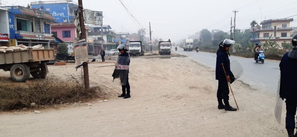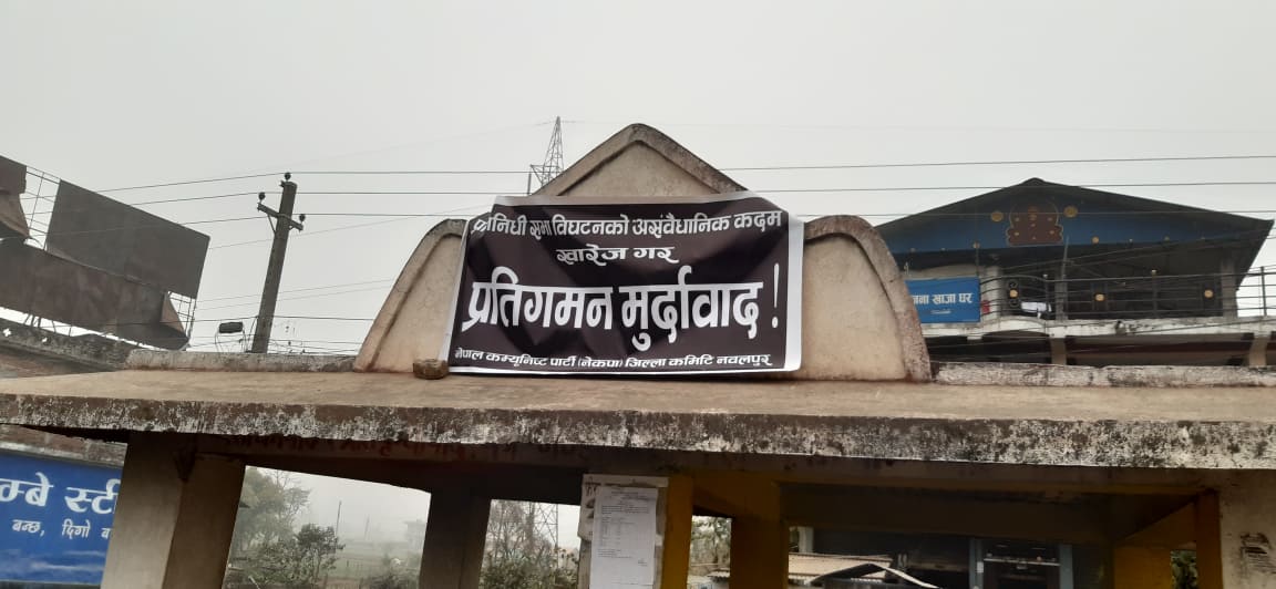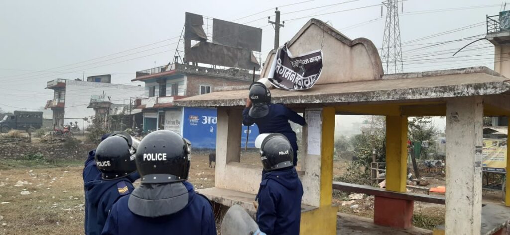 मन्त्री रायमाझी नवलपुर आएपछि, प्रचण्ड नेपाल कार्यकर्ता कालोझण्डा र व्यानर टाङदै, प्रहरी हटाउँदै फोटो फिचर