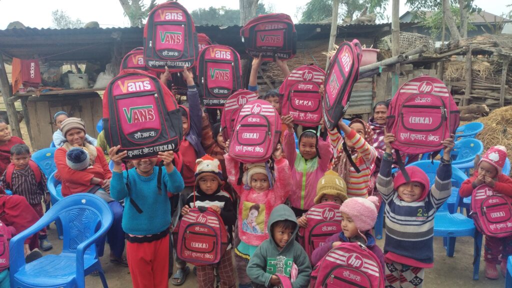 कावासोतीका पूर्ण कुमार श्रेष्ठ ‘याक्का’ द्वारा बालबालिकालाई झोला वितरण