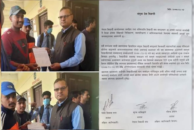 विद्यार्थीले लकडाउन अवधिको शुल्क मिनाहा गर्नुपर्ने र सम्पूर्ण प्रयोगात्मक अभ्यास सञ्चालन गर्नुपर्ने अन्यथा शुल्क लिन नपाइनेलगायत माग राखेका छन् ।