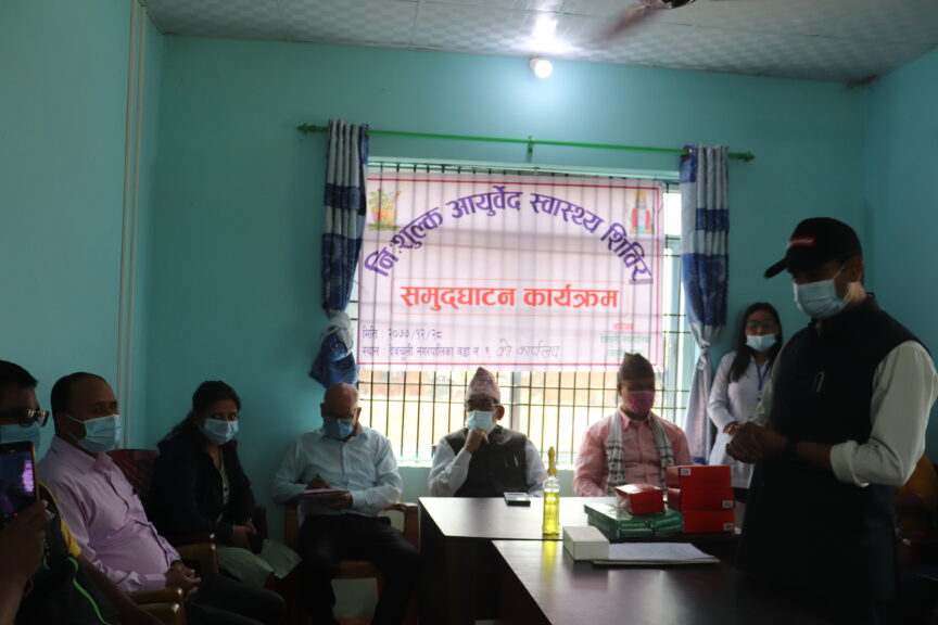 शिविरको उद्घाटन कार्यक्रममा देवचुली नगरपालिकाका उपप्रमुख पार्वता तिवारी, स्वास्थ्यकर्मीहरु लगायतले आयुर्वेद ओषधिको महत्व बारे प्रकाश पारेका थिए । शिविरमा डा. चन्द्रकान्त ज्ञवाली र डा. सुजाता शर्माले सेवा प्रदान गरेका थिए ।