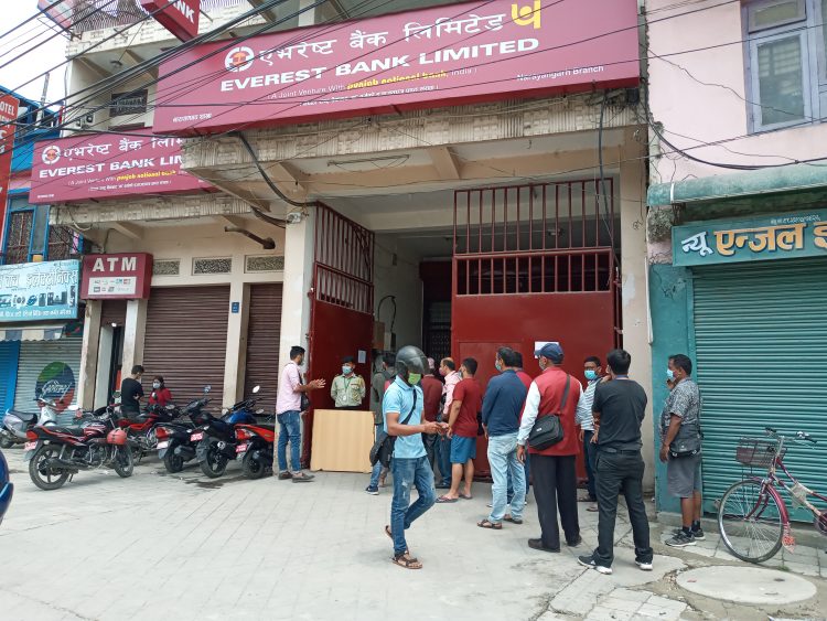 त्यस्तै, बैंकहरुमा पनि सेवाग्राहीको संख्या विस्तारै बढ्दै छ । बैंकहरुमा सेवाग्राहीहरु सेवा लिनका लागि लाइन लागेको देख्न सकिन्छ । मेडिकल, तरकारी तथा फलफुल र खाद्यान्न बाहेकका पसलहरु भने बन्द नै रहेका छन् ।