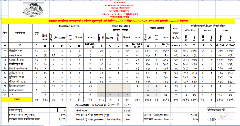 नवलपुरमा आइतबार जम्मा ४ जना नयाँ संक्रमित