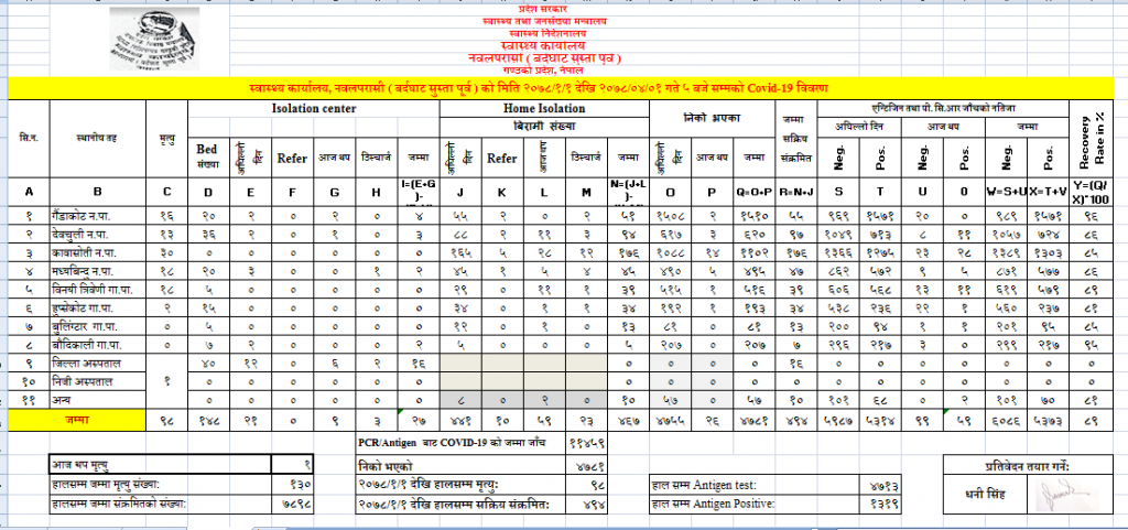 यो सहित नवलपुरमा कोरोनाका कारण ज्यान गुमाउनेको संख्या १ सय ३० पुगेको छ ।