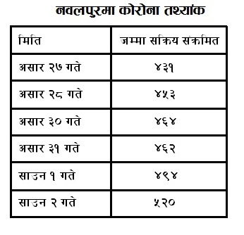 नवलपुरमा बढ्न थाल्यो सक्रिय संक्रमित, सक्रिय संक्रमितको संख्या ५ सय २०