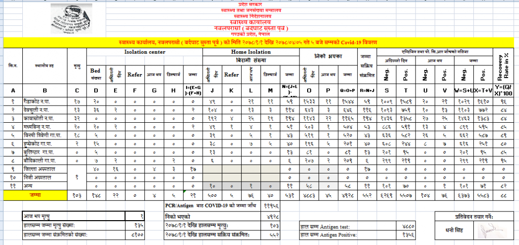 नवलपुरमा १ जना संक्रमितको निधन, ७६ नयाँ संक्रमित थपिए