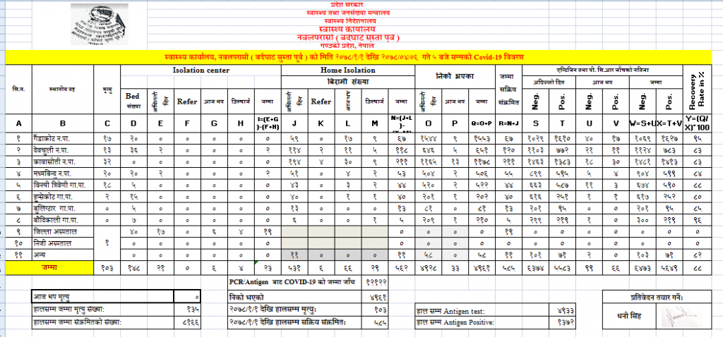 नवलपुरमा ६६ नयाँ संक्रमित थपिए, सक्रिय संक्रमित ५८५