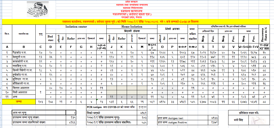 "नवलपुरमा ६६ नयाँ संक्रमित थपिए, सक्रिय संक्रमित ५८५" मा फर्कनुहोस ।