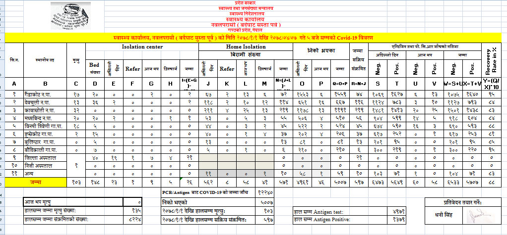 पूर्वी नवलपरासीमा ५८ नयाँ संक्रमित थपिए, ५९७ जना सक्रिय संक्रमित