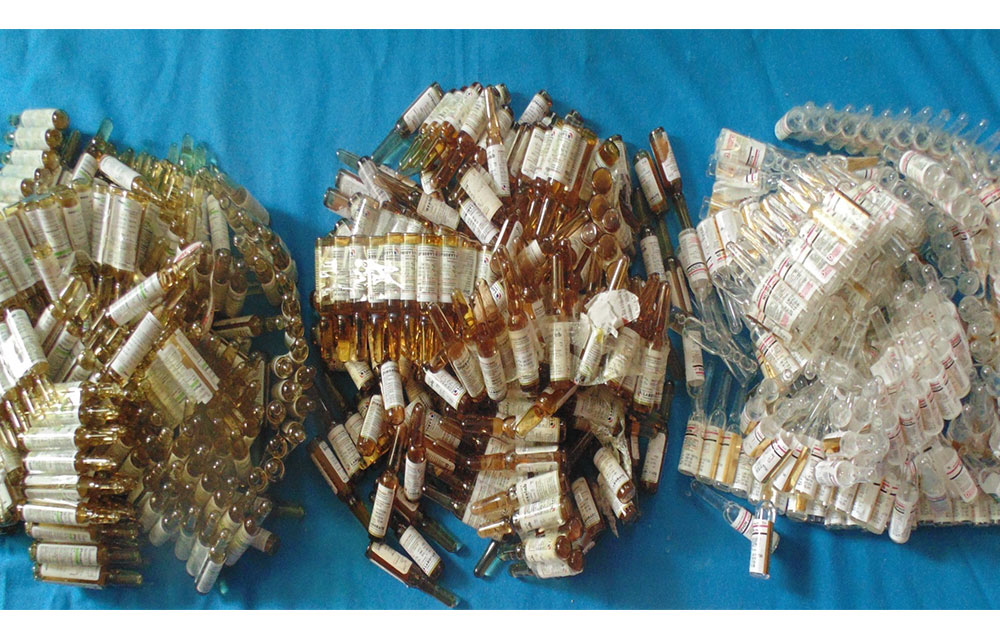 पश्चिम बाट पूर्व तर्फ पैदल हिड्दै गरेको पैदल यात्रीलाइ चेकजाँच गर्ने क्रममा डाईजोपाम २० एम्पुल, फेनरागन २० एम्पुल, नुफिन २० एम्पुल, नाईट्रोभेट १०।४५ ट्याप्लेट, व्हिनस्पास्मो फर्ट० ३२ क्याप्सुल, ओनेक्स १०० ML को २ बोतल ७०, ESKUPD DX १०० ML को १ बोतल लागु औषधि सहीत पक्राउ गरेकाे हाे ।