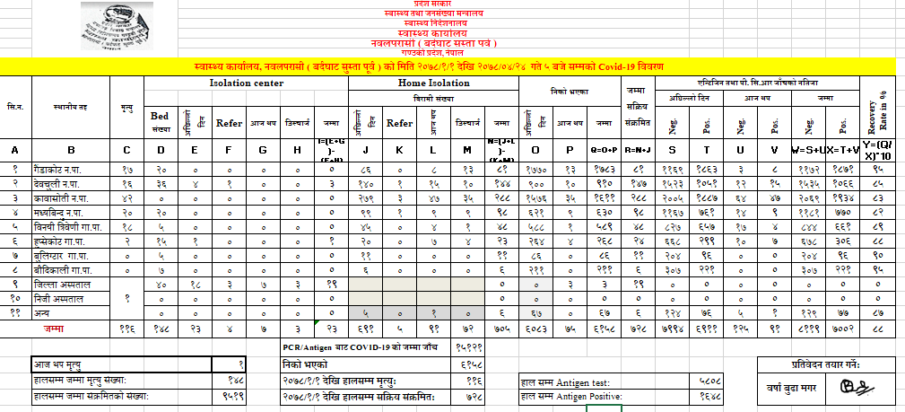 आज नवलपुरमा ९१ जना नयां कोरोना संक्रमित थपिएका छन् ।