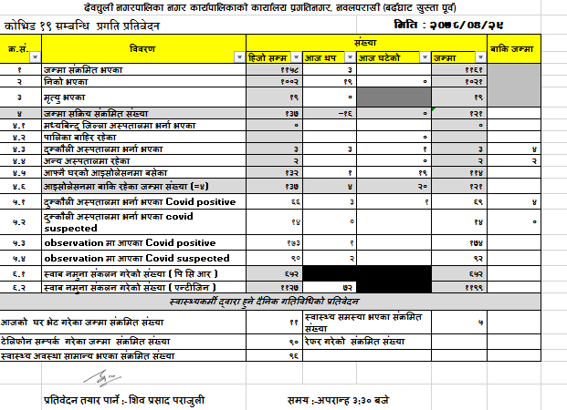 नवलपुरको देवचुलीमा आज ३ जना नयां संक्रमित थपिएका छन् ।
