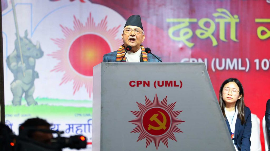 आठौँ महाधिवेशनमा अहिलेका अध्यक्ष ओली झलनाथ खनालसँग अध्यक्षमा पराजित भएका थिए । नवौँ महाधिवेशनमा अध्यक्षमा ओली र माधव नेपालको नेतृत्वबीच सबै पदहरूमा प्यानल निर्वाचन भएको थियो । तर, पार्टी विभाजन भएर सत्ता पक्षले घेराबन्दी गरेको तथा पार्टीको प्राथमिक कार्यभार निर्वाचन भएको भन्दै एमालेले दशौँ महाधिवेशनलाई भने एकताको महाधिवेशन बनाउने घोषणा गरेर वडा र पालिका तहको अधिवेशन सर्वसम्मत टुंग्याएको थियो । त्यस्तै, महाधिवेशनका अधिकांश प्रतिनिधि सर्वसम्मत चयन भएका थिए ।