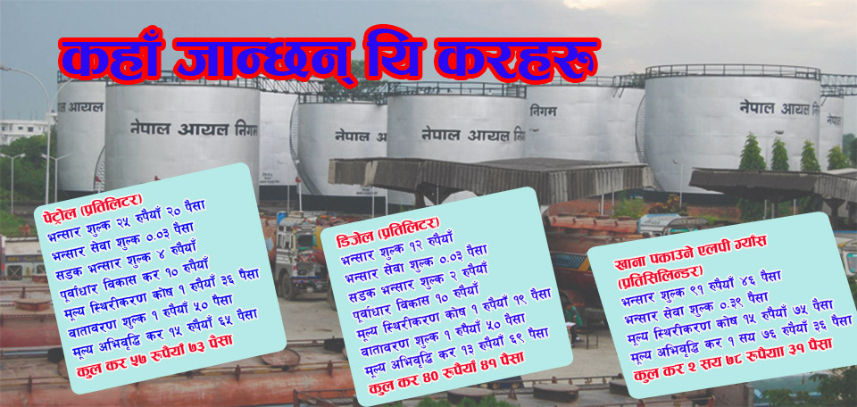 नेपाल आयल निगमले भारतसँग सस्तोमा तेल खरिद गरे पनि अत्यधिक कर उठाउँदा उपभोक्ताले महँगो मूल्य तिर्नु परिरहेको छ ।