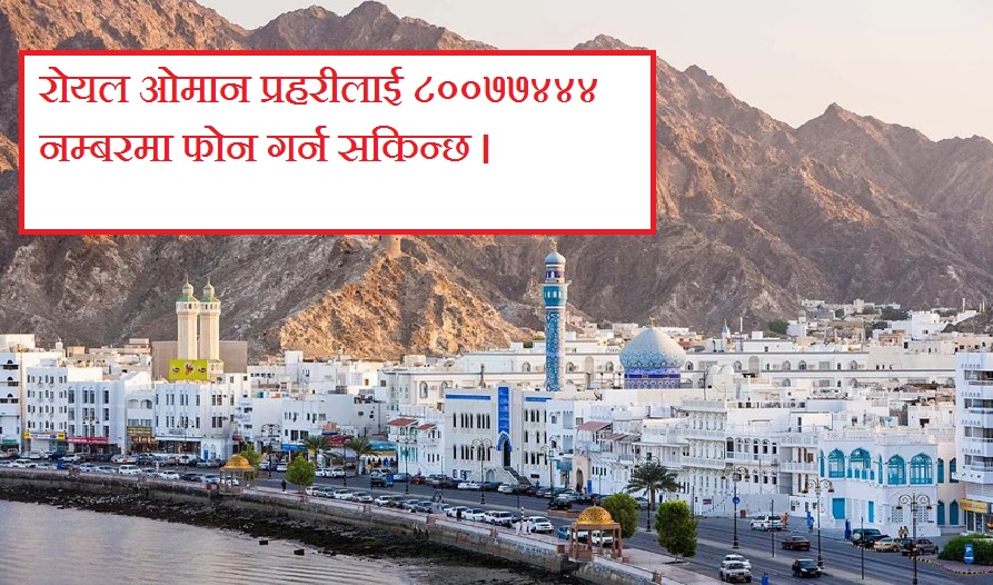 तपाईँ वैदेशिक रोजगारीको सिलसिलामा ओमान पुग्नुभएको छ । तर तपाईँलाई त्यहाँ पुर्याउने व्यक्तिले पहिले भनेजस्तो त्यहाँ काम गर्ने वातावरण छैन र भनिएको भन्दा निकै फरक काम पाउनुभएको छ भने तपाईँले रोयल ओमान प्रहरीको हटलाइन नम्बरमा फोन गरेर सहयोग लिन सक्नुहुन्छ ।