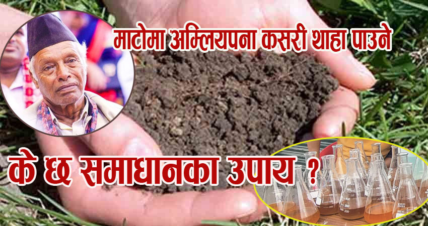 माटो अम्लिय छारिय र तटस्थ रुपमा हुन्छ । माटो कस्तो छ त भनि जानकारी लिन माटो परीक्षण गर्नुपर्दछ । माटो परिक्षण गर्नको लागि सर्ब प्रथम हाम्रो समस्या युक्त जग्गाको माटाको नमुना सञ्कलन गर्नुपर्छ ।