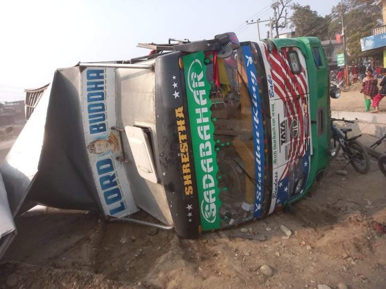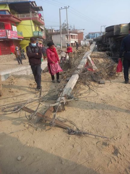 जिल्ला प्रहरी कार्यालय चितवनका अनुसार सडक विस्तार भइरहेको नारायणगढ गोन्द्राङ्ग सडक खण्डमा कन्टेनर पल्टिएर विद्युतको पोलमा समेत क्षती पुगेको थियो ।