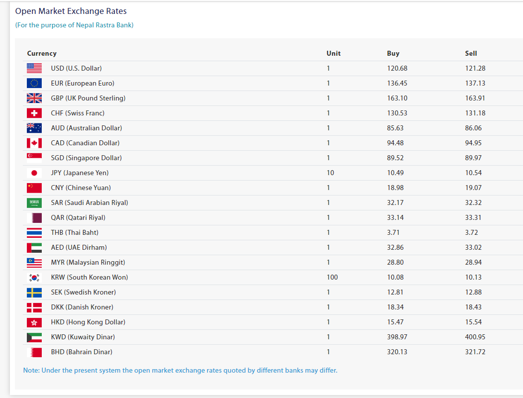 अन्य देशको मुद्राको विनिमयदर यस्तो छः