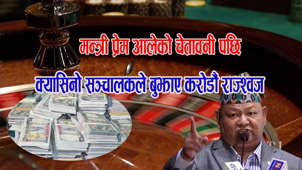 संस्कृति पर्यटन तथा नागरिक उड्डयनमन्त्री प्रेमबहादुर आलेले रोयल्टी नतिर्ने केही क्यासिनोको लाइसेन्स खारेज गर्नाका साथै अन्यको पनि खारेज हुने चेतावनी दिएसँग अहिले क्यासिनो सञ्चालकले धामाधम रोयल्टी तिर्न थालेका छन् ।