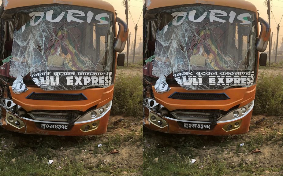 नवलपुरमा बस र ट्रक ठक्कर खाँदा श्रीमतीको निधन, श्रीमान सहित ३ जना घाइते