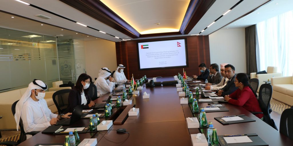 उक्त बैठकमा वैदेशिक रोजगारीका लागि युएई जाने नेपाली श्रमिकको सामाजिक सुरक्षा, कार्यस्थल सुरक्षा, स्वास्थ्य बिमाको व्यवस्था, सीप विकास, पारिश्रमिक वृद्धिलगायतका विषयमा छलफल भएको थियो ।