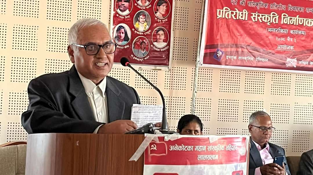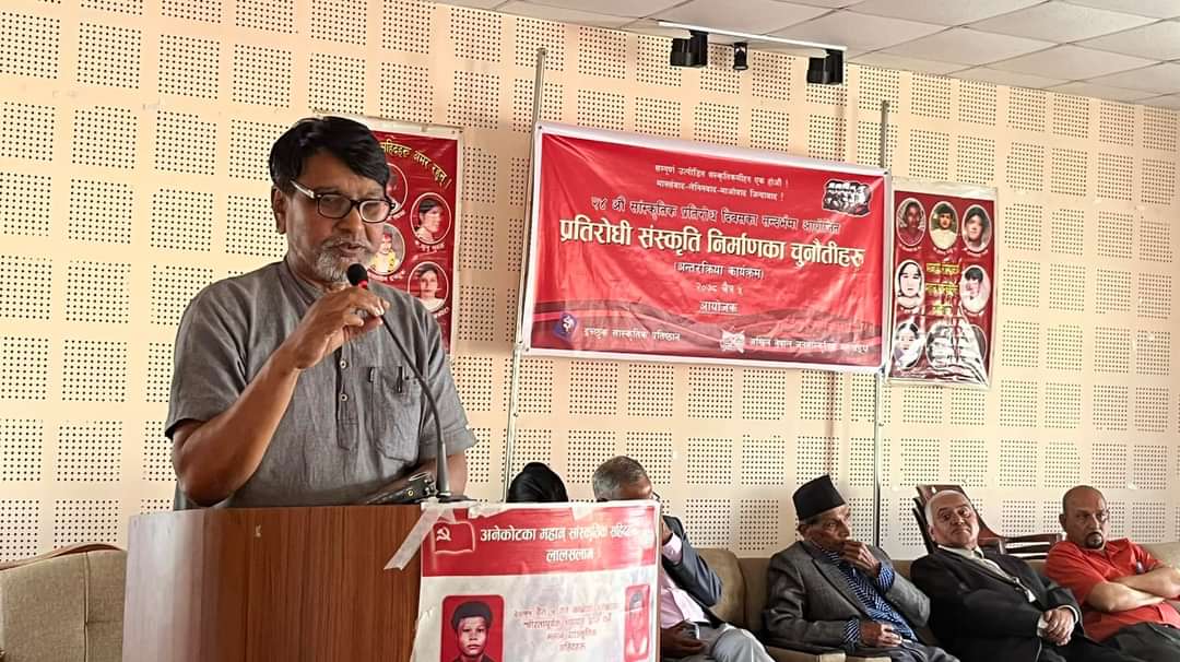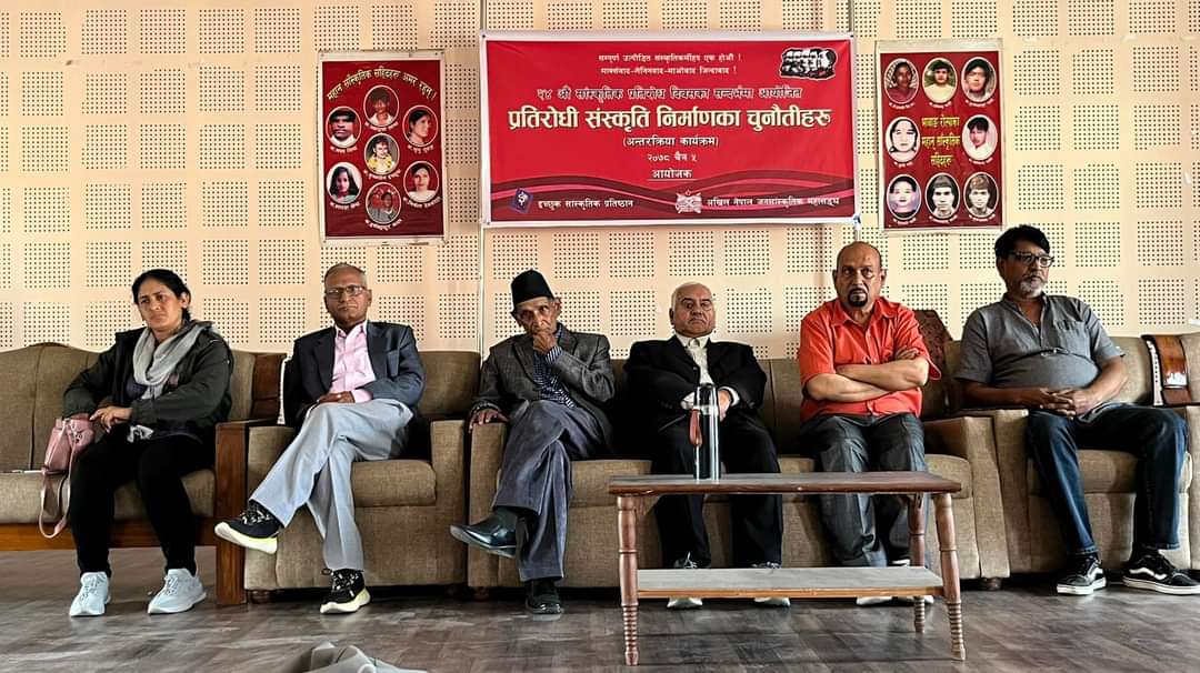 काठमाडौं÷२४औँ सांस्कृतिक प्रतिरोध दिवसको सन्दर्भमा अखिल नेपाल जनसांस्कृतिक महासङ्घ केन्द्रीय समिति र इच्छुक सांस्कृतिक प्रतिष्ठानको संयुक्त आयोजनामा ‘प्रतिरोधी संस्कृति निर्माणका चुनौतीहरू’ विषयक अन्तरक्रिया कार्यक्रम काठमाडौंमा सम्पन्न भएको छ ।