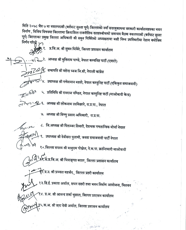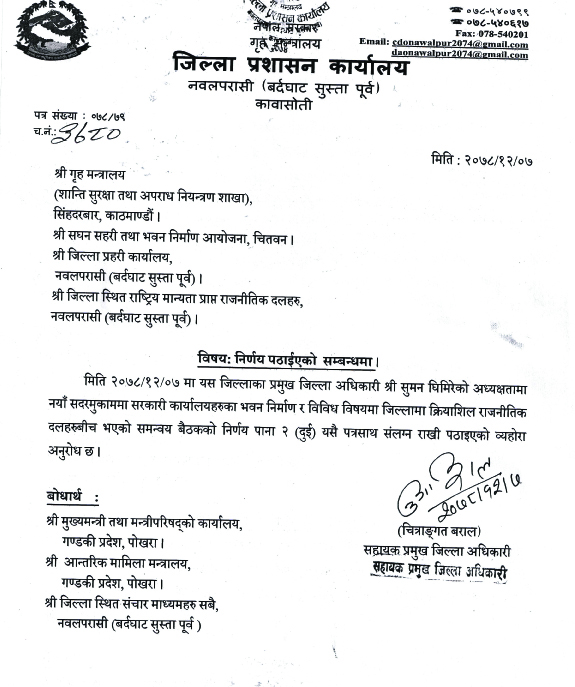 आज जिल्ला प्रशासन कार्यालय नवलपुरमा बसेको नवलपुरका राजनीतिक दलका वैठकले यस्तो निर्णय गरेको हो ।
