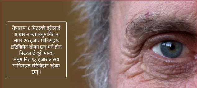 जसमध्ये ५० वर्ष भन्दा माथिका मानिसहरूको सङ्ख्या २.५ प्रतिशत रहेको छ । नेपालमा कुल ६६ प्रतिशत दृष्टिविहीनता उपचारको माध्यमबाट निवारण गर्न सकिन्छ भने १६ प्रतिशत दृष्टिविहीनता रोकथाम गर्न सकिने खालको रहेको डा. मिश्रको भनाइ छ ।