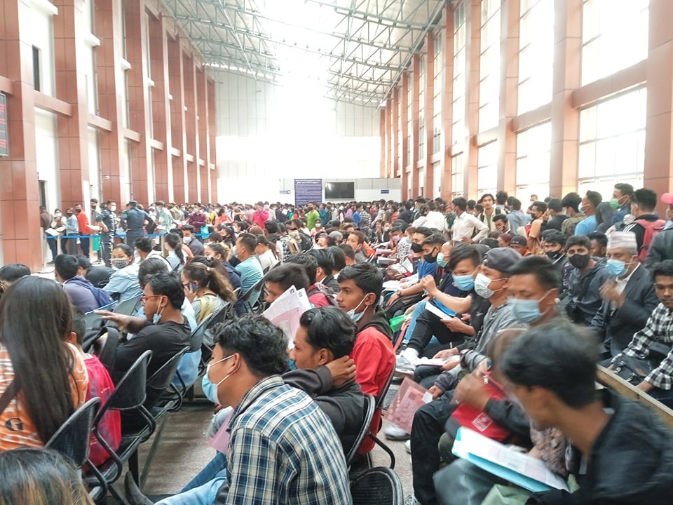 त्रिपुरेश्वरमा रहेको राहदानी विभागमा पासपोर्टको लागि दिनहुँ यस्तै घुईंचो लाग्छ । विभागले छिट्टै समस्या समाधान हुन्छ भनेको महिना दिनभन्दा बढी भैसक्दासमेत अवस्था उस्तै छ ।
