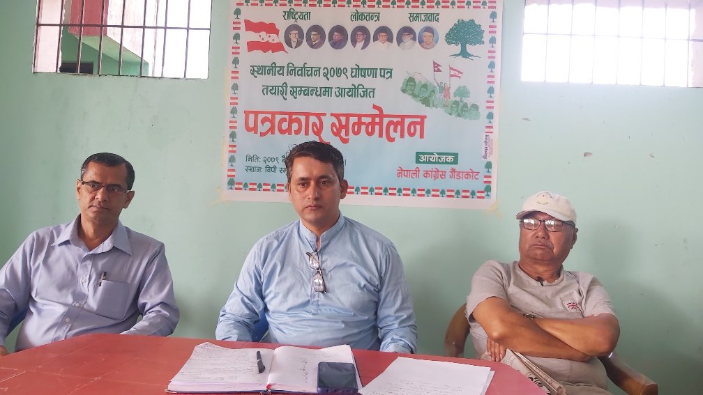गैँडाकोट । स्थानीय तह निर्वाचनको लागि तयार गर्न लागिएको घोषणापत्रमा समावेश गनुपर्ने विषयलाई लिएर नेपाली काँग्रेस गैँडाकोटले नगरवासी समक्ष सुझाव संकलन सुरु गरेको छ ।