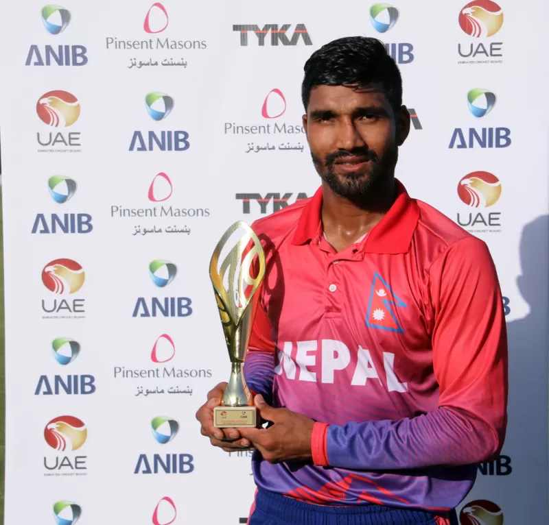 नेपालका दुई खेलाडी आउट भइसकेको अवस्थामा उनले मल्लसँग मिलेर तेस्रो विकेटका लागि १११ रनको पार्टनरशीप गरेर जितको आधार बनाउन सहयोग गरे।