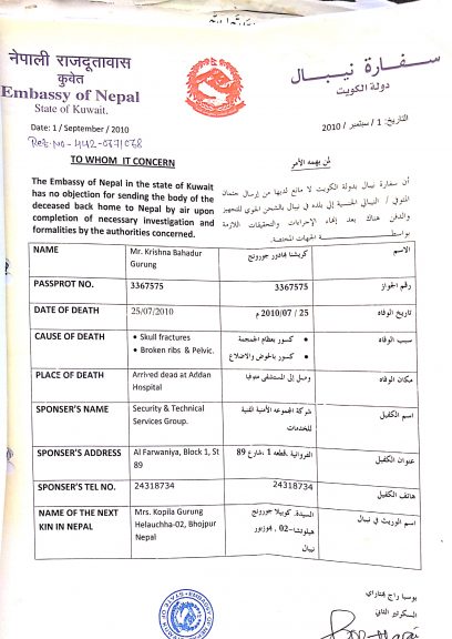 त्यसपछि उहाँ वडा कार्यलयदेखि वैदेशिक रोजगार विभाग, वैदेशिक रोजगार बोर्ड र परराष्ट्र मन्त्रालयको च’क्कर काट्न लाग्नुभयो । कोपिलाका अनुसार यहाँ (परराष्ट्र)बाट भनेपछि कुवेतमा रहेको नेपाली दूतावासले कृष्णले काम गरेको कम्पनीसँग क्षति’पू’र्तिको लागि माग गर्यो तर कम्पनीले दिन नमानेपछि दूतावासमार्फत् कुवेतको अ’दा’लतमा मु’द्दा दर्ता भयो ।