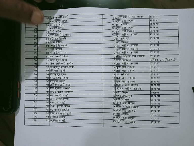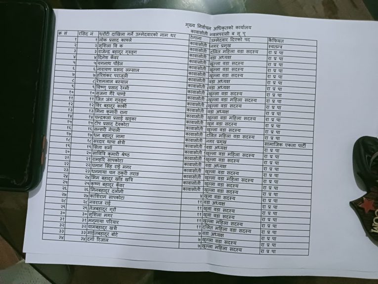पहिलो दिन मनोनयन दर्ता गराउनेको सूची