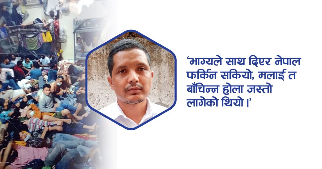 ‘भाग्यले साथ दिएर नेपाल फर्किन सकियो, मलाई त बाँचिन्न होला जस्तो लागेको थियो’, त्यही दिन डिपोर्ट भएर फर्किनुभएका दैलेखका निर्मल केसीले भन्नुभयो, ‘यहाँको विमानस्थलमा पुगेर बल्ल लामो सास फेरेँ, आफू सुरक्षित भएको महसुस गरेँ ।’
