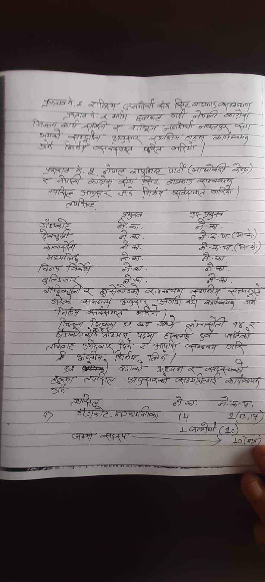 त्यसैगरी गैडाकोट १० मा जनमोर्चाले वडाध्यक्ष लिने भएको छ । अन्य दलसँग छलफल जारी रहेकाे काँग्रेस नवलपुरले जनाएकाे छ ।