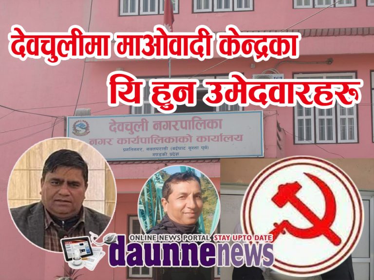 देवचुली । पुर्वी नवलपरासीको देवचुली नगरपालिकामा नेकपा माओवादी केन्द्रबाट नगर उपप्रमुख सहित १५ जनाले उमेदवार दिएका छन् ।