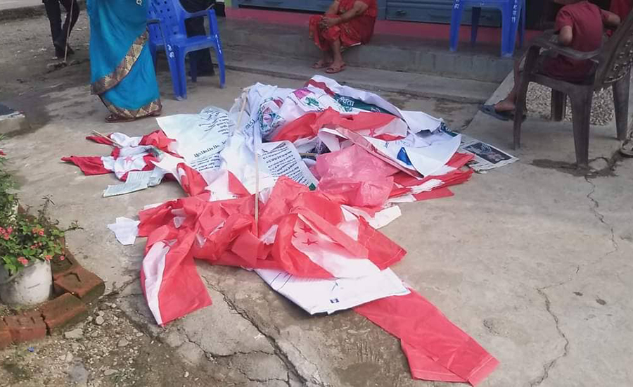 कांग्रेस कार्यकर्ताहरुले पार्टी कार्यालय तोडफोड गरी कार्यालयमा रहेका कुर्ची टेबल तथा पार्टीको झण्डा सडकमा फ्याँकेका छन्।