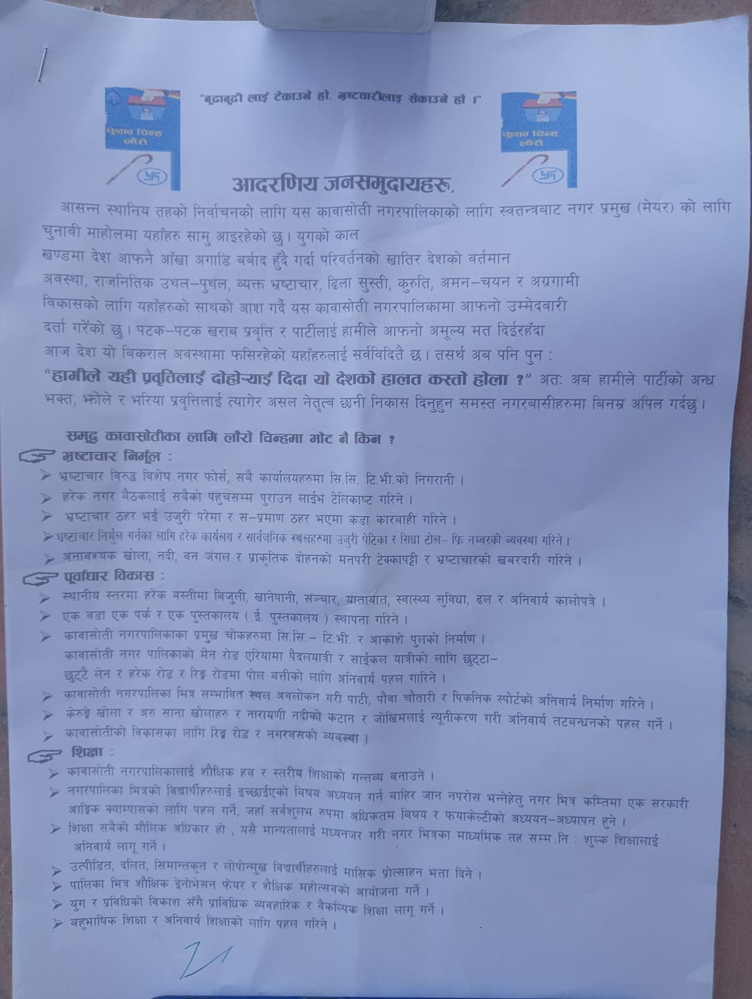 कावासोतीका नगरप्रमुखका स्वतन्त्र उमेदवार अमितको घोषणा पत्र, भ्रष्ट्राचार निर्मुलदेखि राष्ट्रवादसम्म (यस्तो छ घोषणा पत्र)