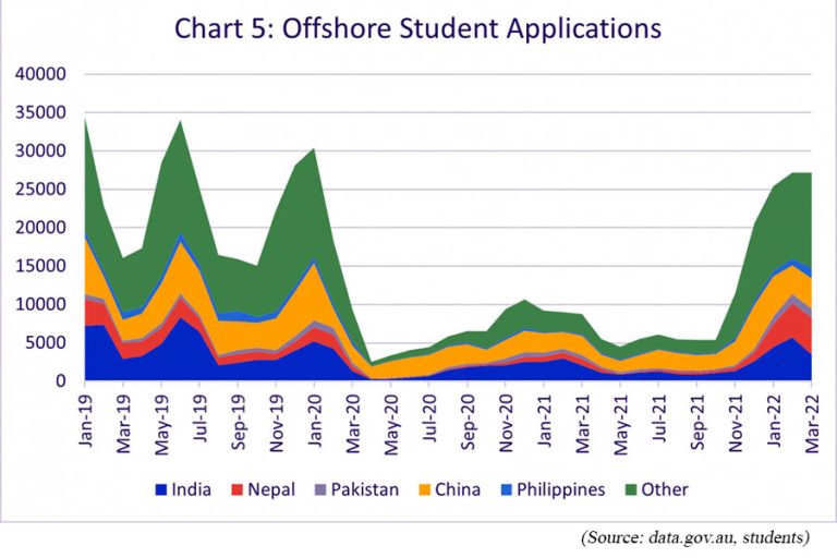 स्मरण रहोस् अष्ट्रेलियामा विदेशी विद्यार्थीको आवेदन दर मार्च र अप्रिलमा घट्दछ भने जनवरीमा सबैभन्दा उच्च हुने गर्दछ । तर सन् २०२२ को मार्च महिनामा उल्लेख्य विदेशी विद्यार्थीको आवेदन परेको छ ।