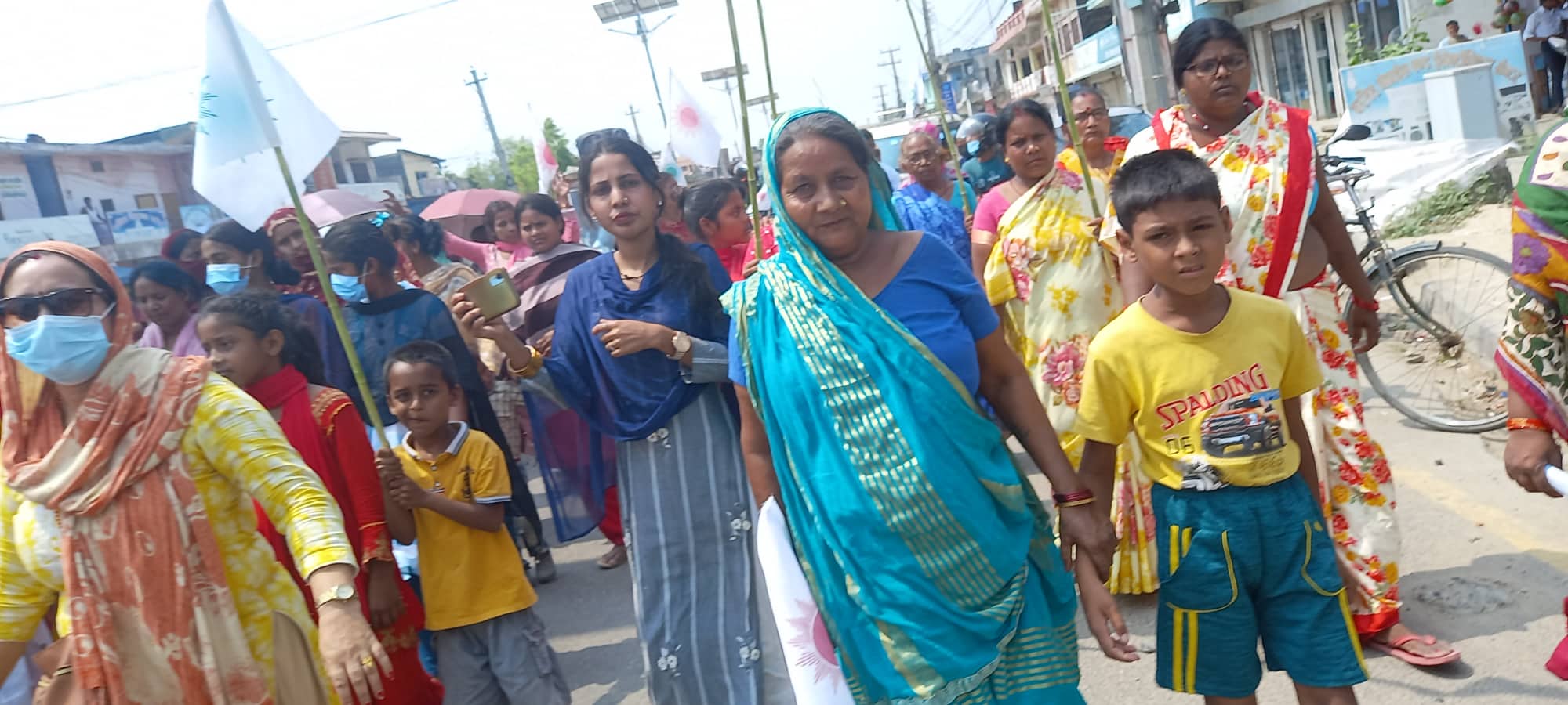 पश्चिम नवलपरासीको सदरमुकाम परासीमा सोमवार नेकपा (एमाले)ले निकालेको चुनावी रैलीमा बालबालिकाहरुलाई प्रयोग गरेको अवश्था ।