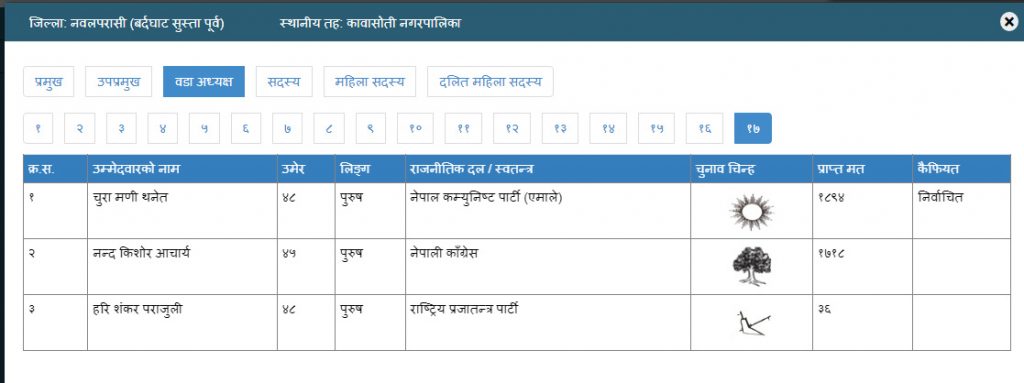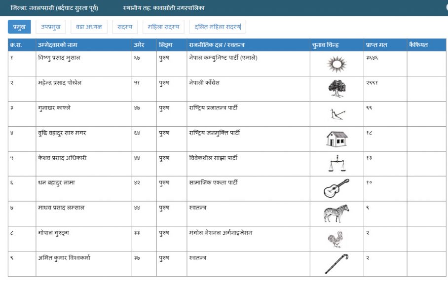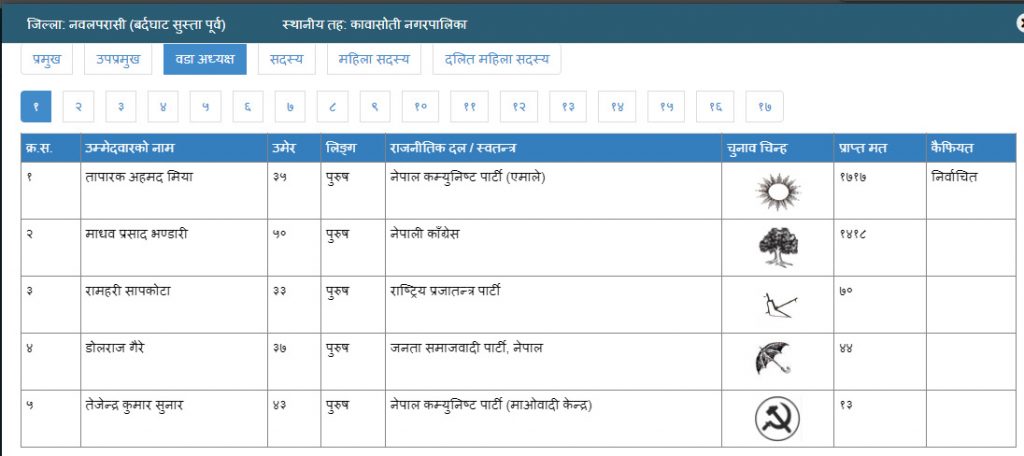 कावासोती १७ को वडाध्यक्षमा प्राप्त अन्तिम मत परिणाम