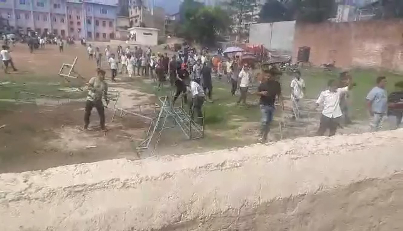 मतगणना स्थलमा माओवादीको नाराबाजी, विद्यालय ताेडफाेड